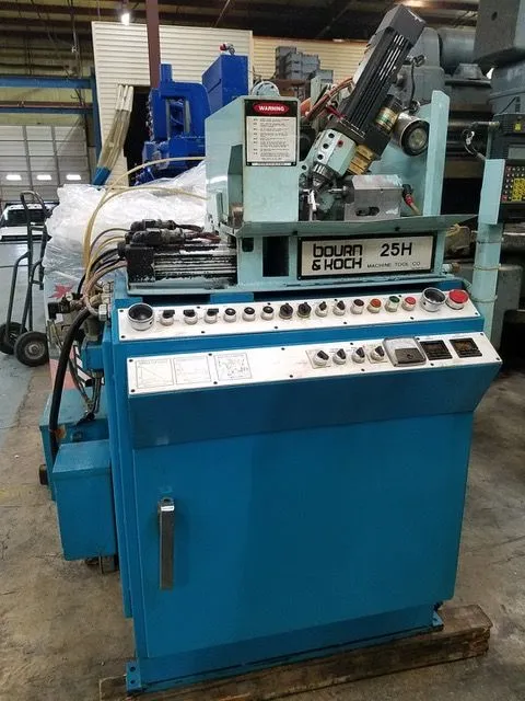 Bourn & Koch Model 25H 4 axis CNC Horizontal Gear hobber, 1" Max Diam, 1" Max hob Diam, 7" Center distance, taper and crown hobbing, feed and speed changes between cuts, 3000 hob RPM, Num CNC controls motors and drives. Excellent condition from a small precision Gear shop!