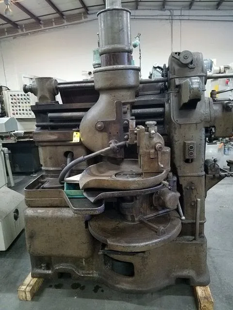 Fellows model 61a vertical gear shaping machine, 18" diameter capacity, 5" stroke, hollow spindle, 0" riser W/ Special pinion support tailstock & Pan attachment. Inspect under power in our statesville facility in very good operating condition