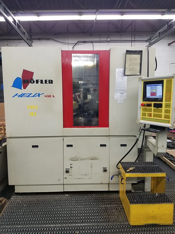 Hofler CNC Gear Grinding Machine, Model Helix 400K Max diameter 15.7" , 8.3" stroke length, 2.5-50.8 DP range, full filtration and chilling system, Excellent condition in plant under power . full compliment of flanges, tooling etc. new 2001
